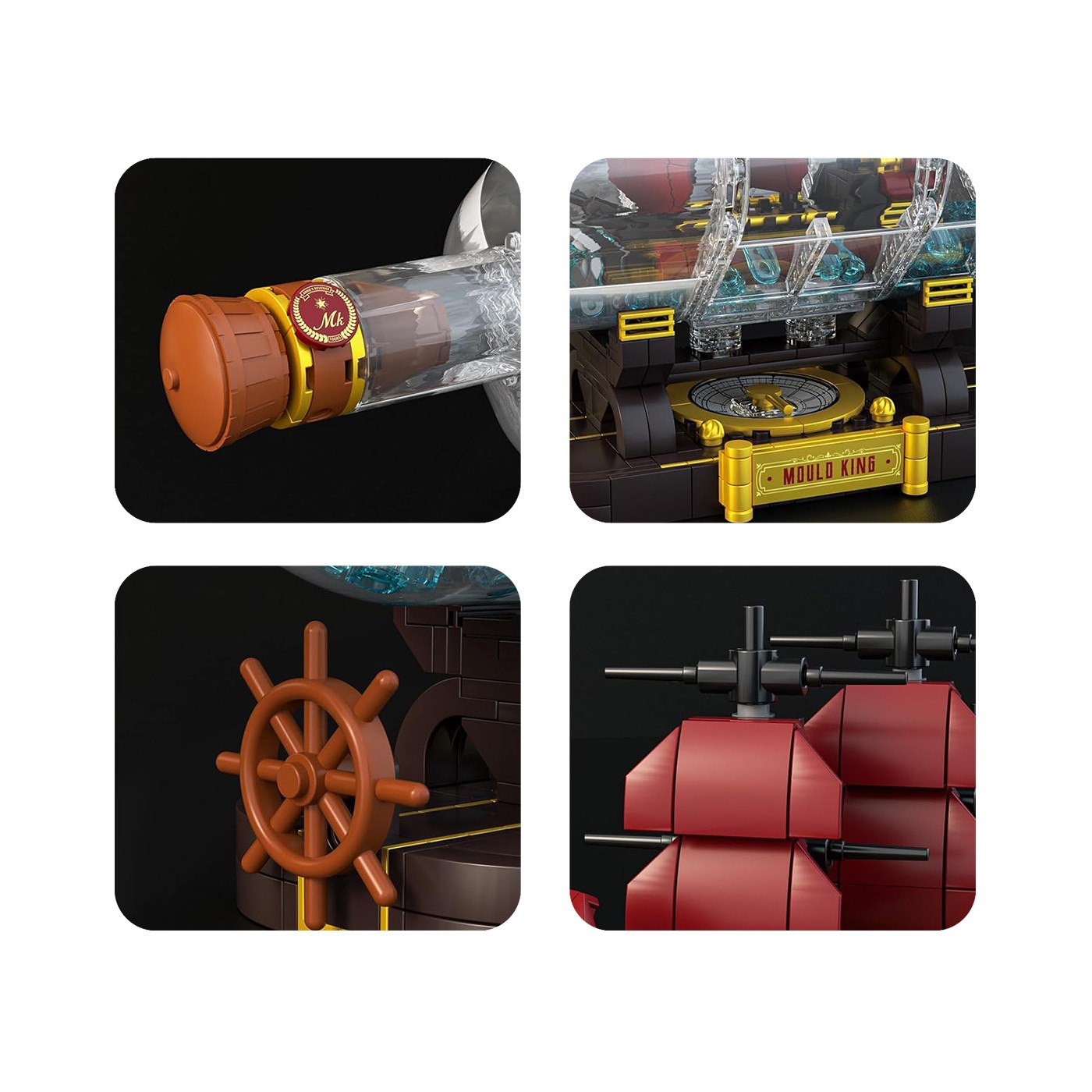 High-quality Mold King building blocks for children aged eight and up. This set consists of 885 pieces, allowing you to build a pirate ship in a bottle. This stunning model is sure to attract attention with its detailed design.