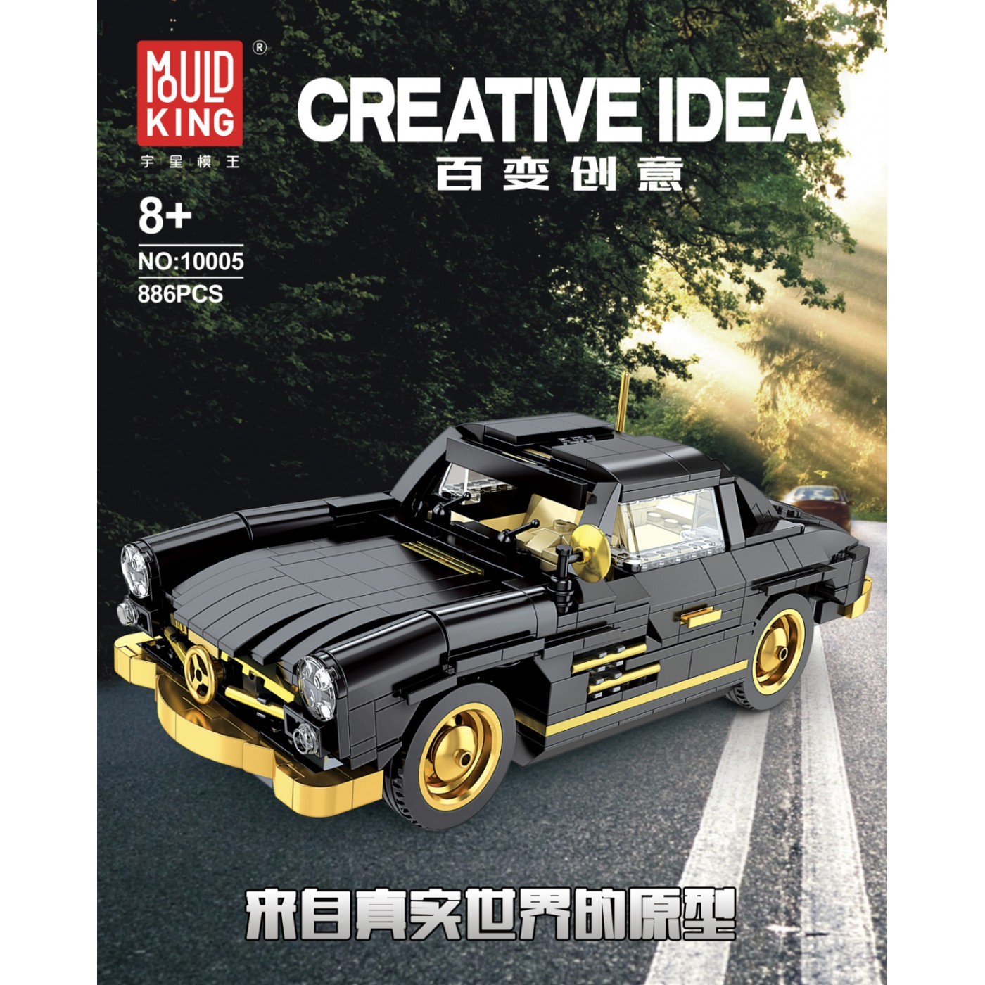 High-quality building blocks for children aged eight and up. This set consists of 886 pieces, from which you can build a black retro car. This stunning car model is sure to attract attention with its detail. Gold chrome elements include the wheels, grille, and bumper, and a fully detailed interior. This model features opening side doors, hood, and trunk.