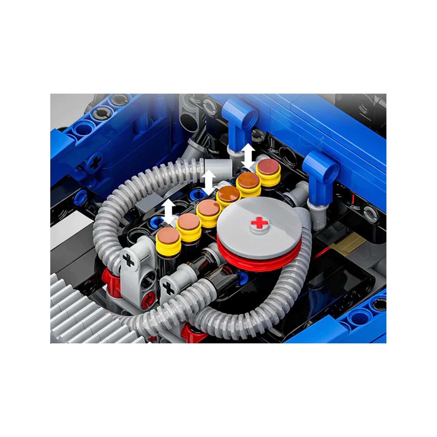 High-quality building blocks for children aged eight and up. This set consists of 2,101 pieces, allowing you to build a blue 1:12 scale off-road vehicle. This stunning model car is sure to attract attention with its detailed features. The vehicle features opening side doors, trunk, and hood.