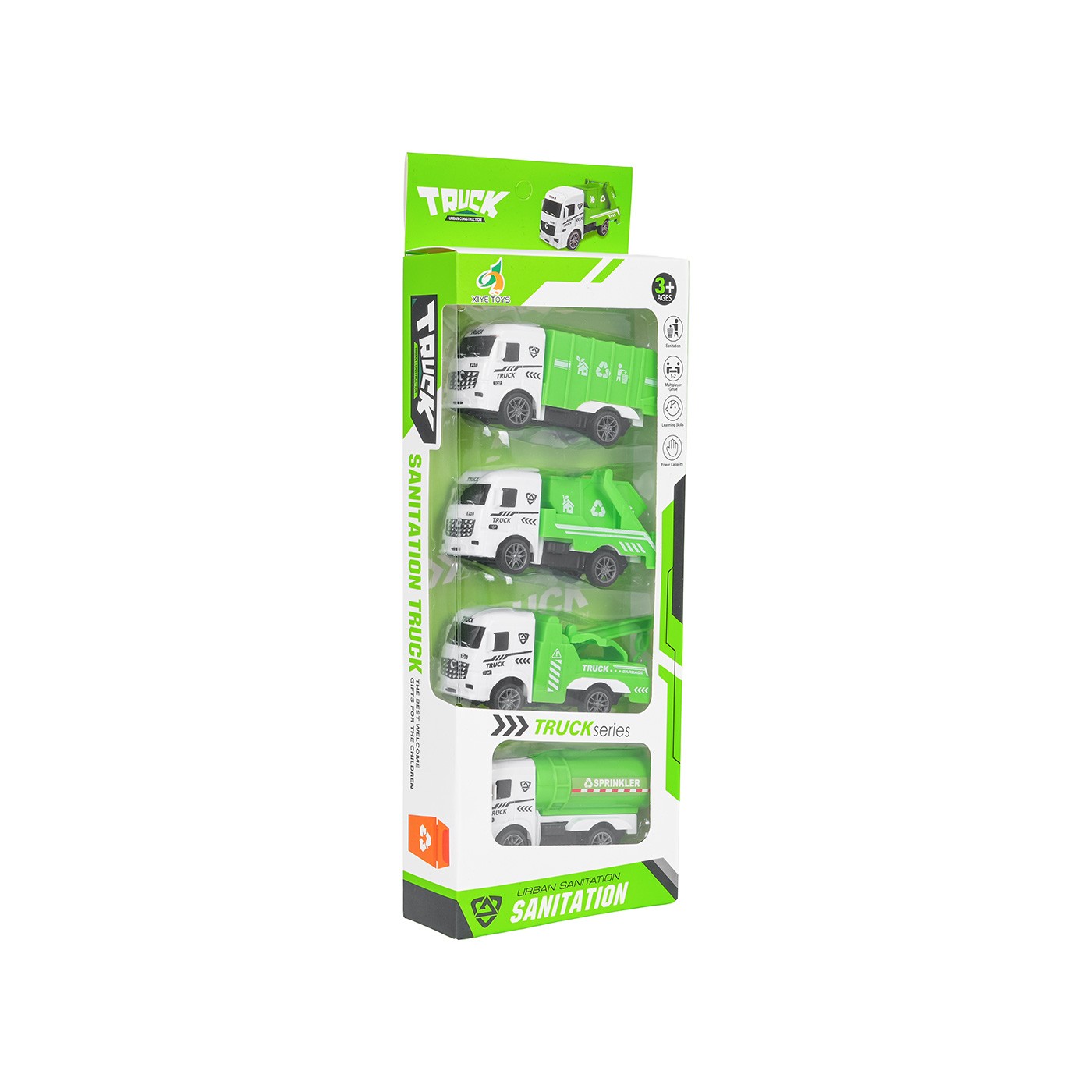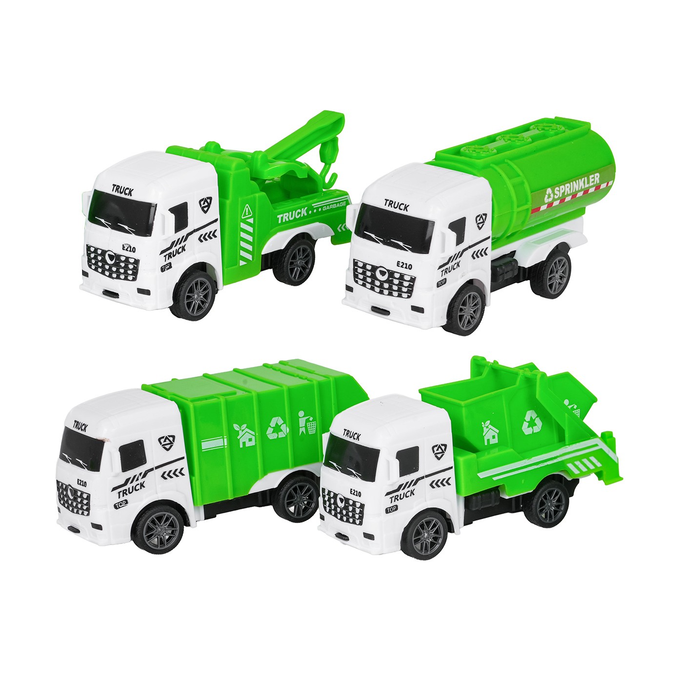 This set of vehicles is perfect for children aged three and up. Crafted from the highest quality materials, with meticulous attention to detail and vibrant colors, the vehicles are sure to inspire play. They faithfully replicate the iconic urban environments known from city streets. The vehicles feature movable parts and are compact enough to be taken anywhere. The set includes a garbage truck, a rubble truck, a tanker truck, and a boom truck.