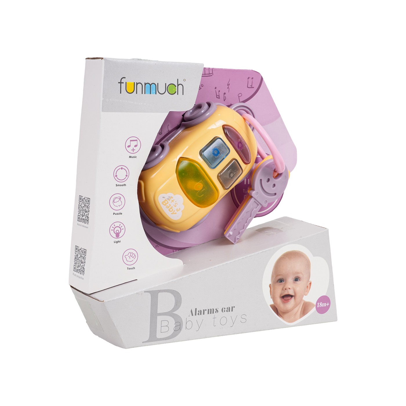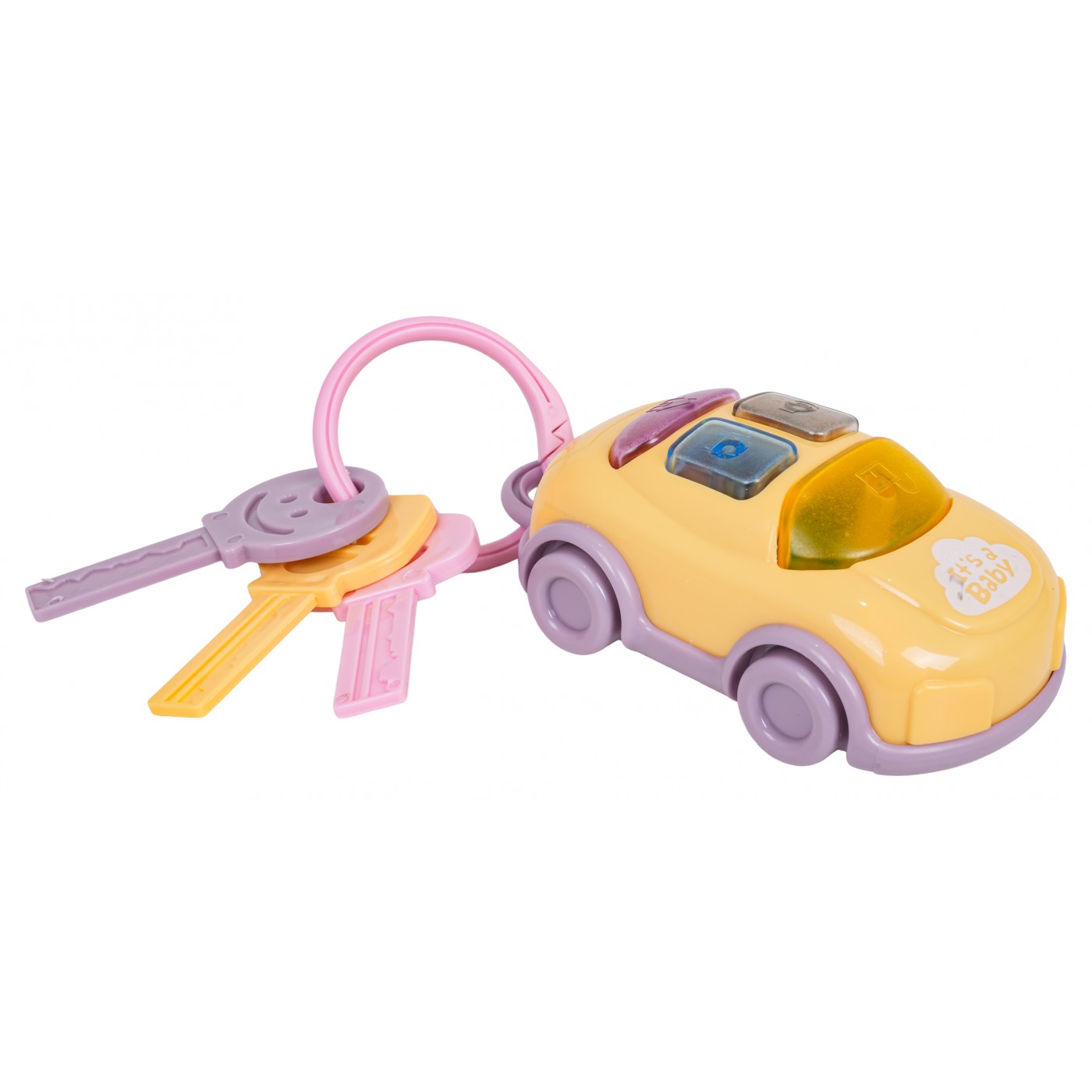 An interactive set of a vehicle-shaped keychain and keys for children aged eighteen months and up. Made of baby-safe materials, the toy has no sharp edges. Buttons on the car's roof activate sound effects: a bell, a start-up sound, a car unlock sound, and a horn. The lights also flash. The toy is powered by 2 x 1.5V AAA batteries (not included). Features: - a set suitable for children from eighteen months of age, - made of safe materials, - sound effects: bell sound, vehicle start sound, car opening sound and beep sound, - flashing lights on the roof of the vehicle. |