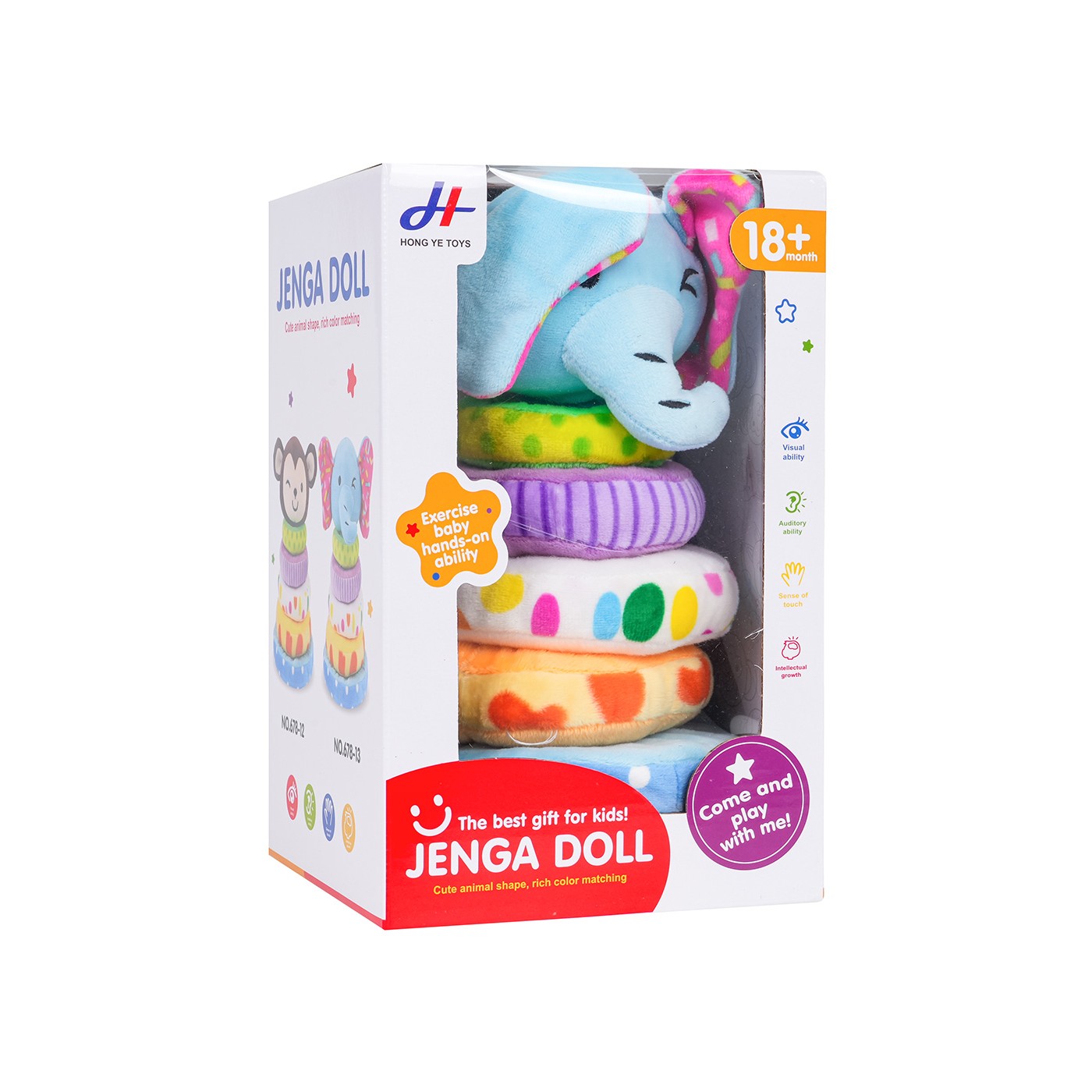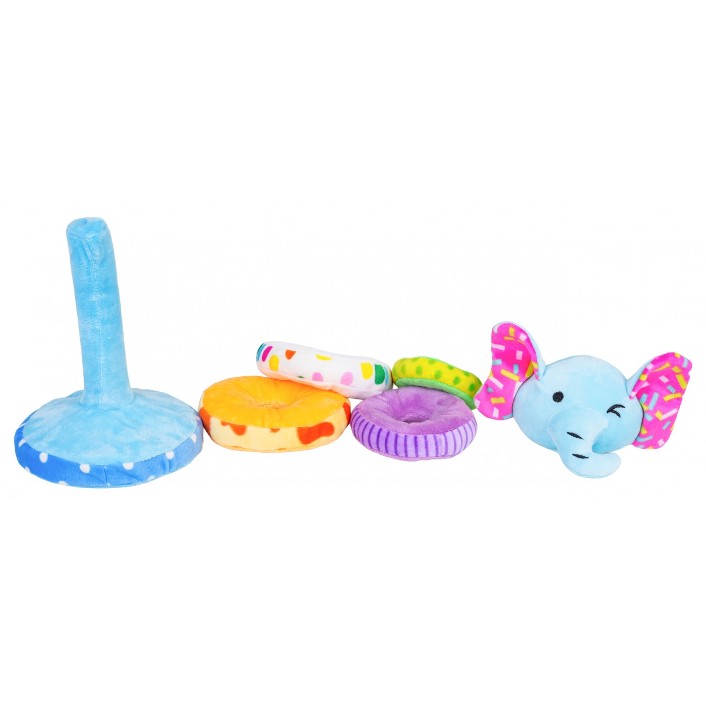 Features: - a toy for children from eighteen months of age, - education through play, - the richness of colors attracts the child's eye and curiosity, - pyramid made of plush, - a whistle in the elephant's head. |