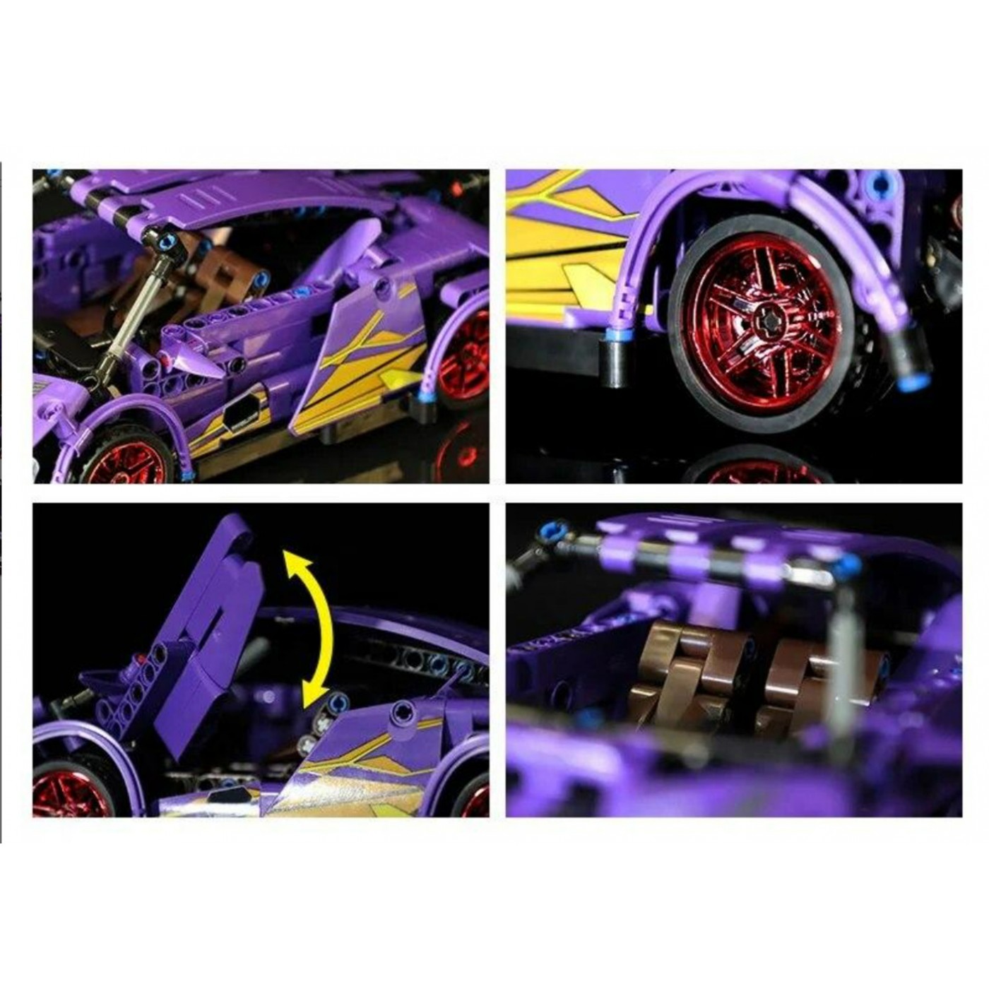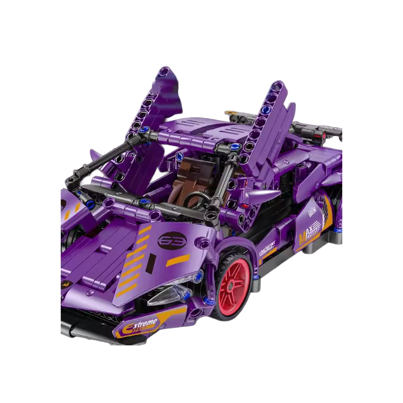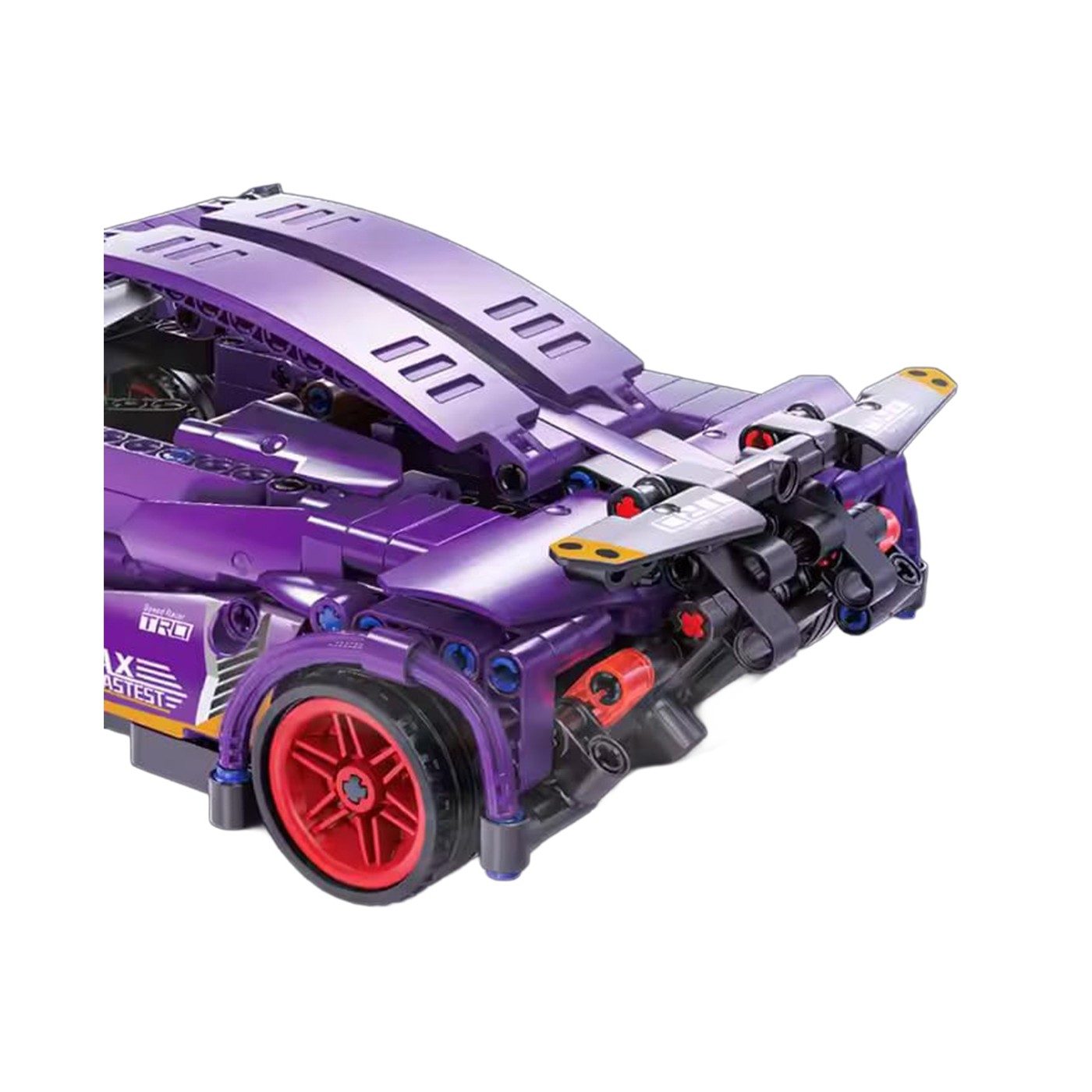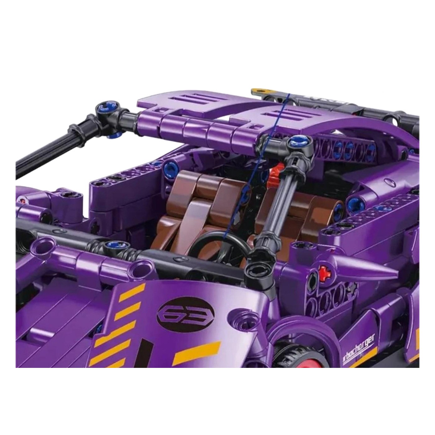 High-quality building blocks for children aged six and up. The set consists of 470 pieces, from which you can build a purple sports car. This stunning car model is sure to attract attention with its detailed design. The vehicle features rubber tires for excellent grip and a pull-back motor for smooth driving.