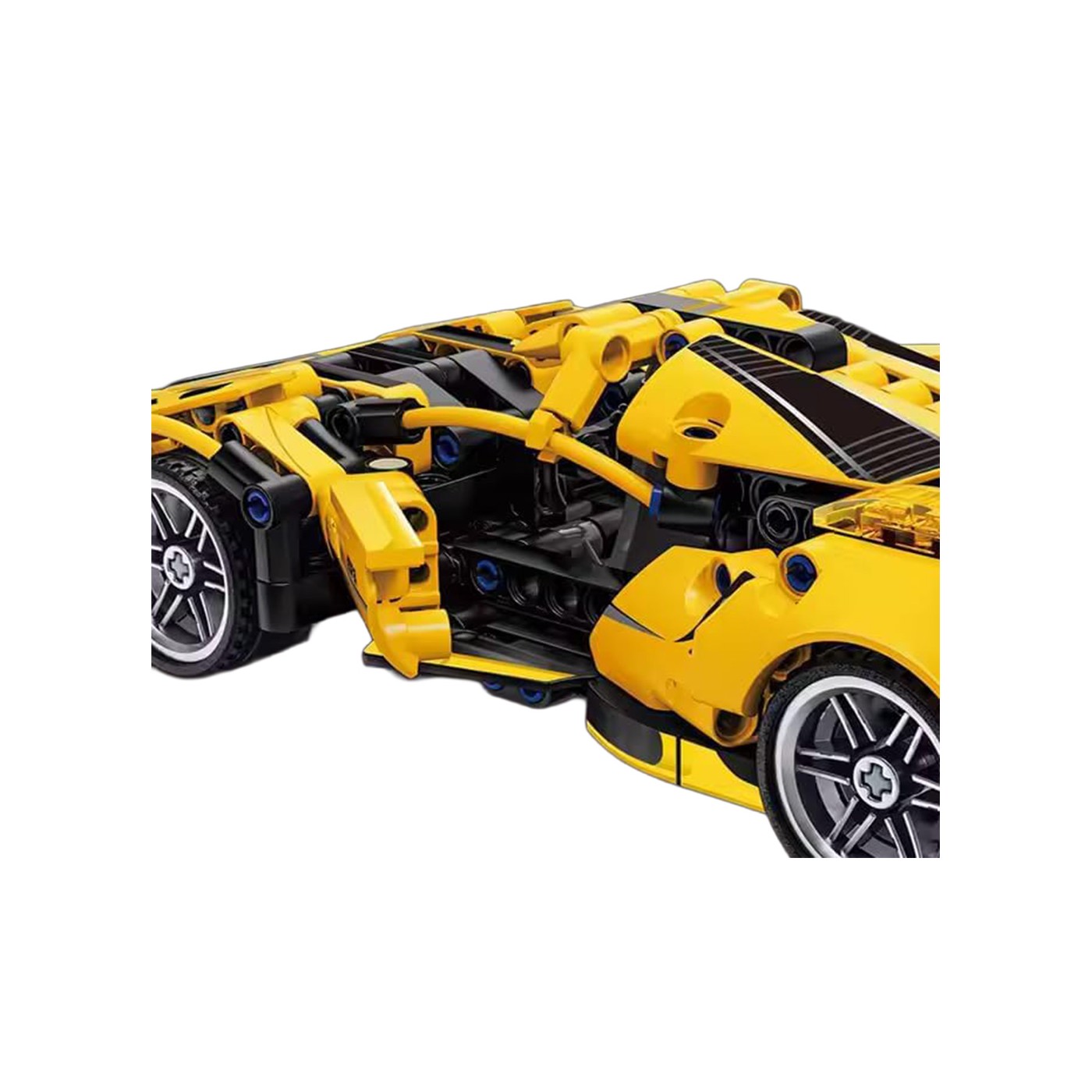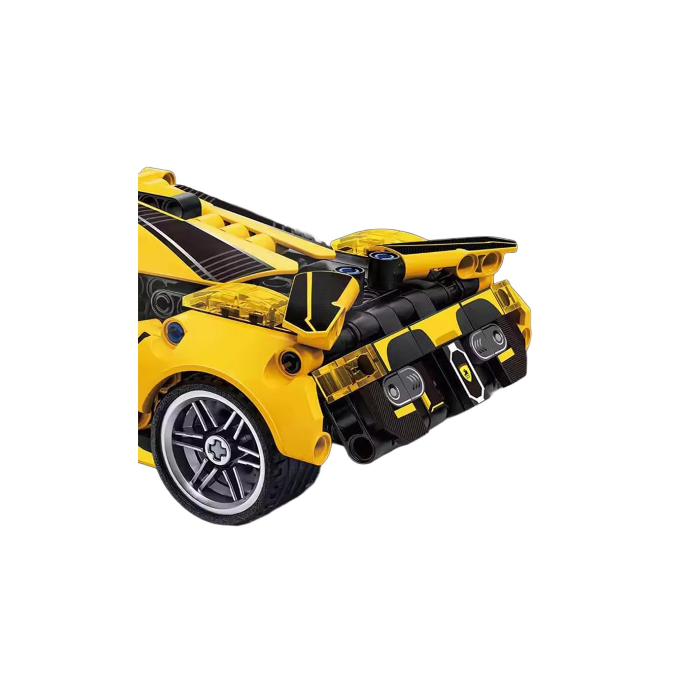 High-quality building blocks for children aged six and up. The set consists of 422 pieces, from which you can build a yellow sports car. This stunning model car is sure to attract attention with its detailed design. The vehicle features rubber tires for excellent grip and a pull-back motor for smooth driving.