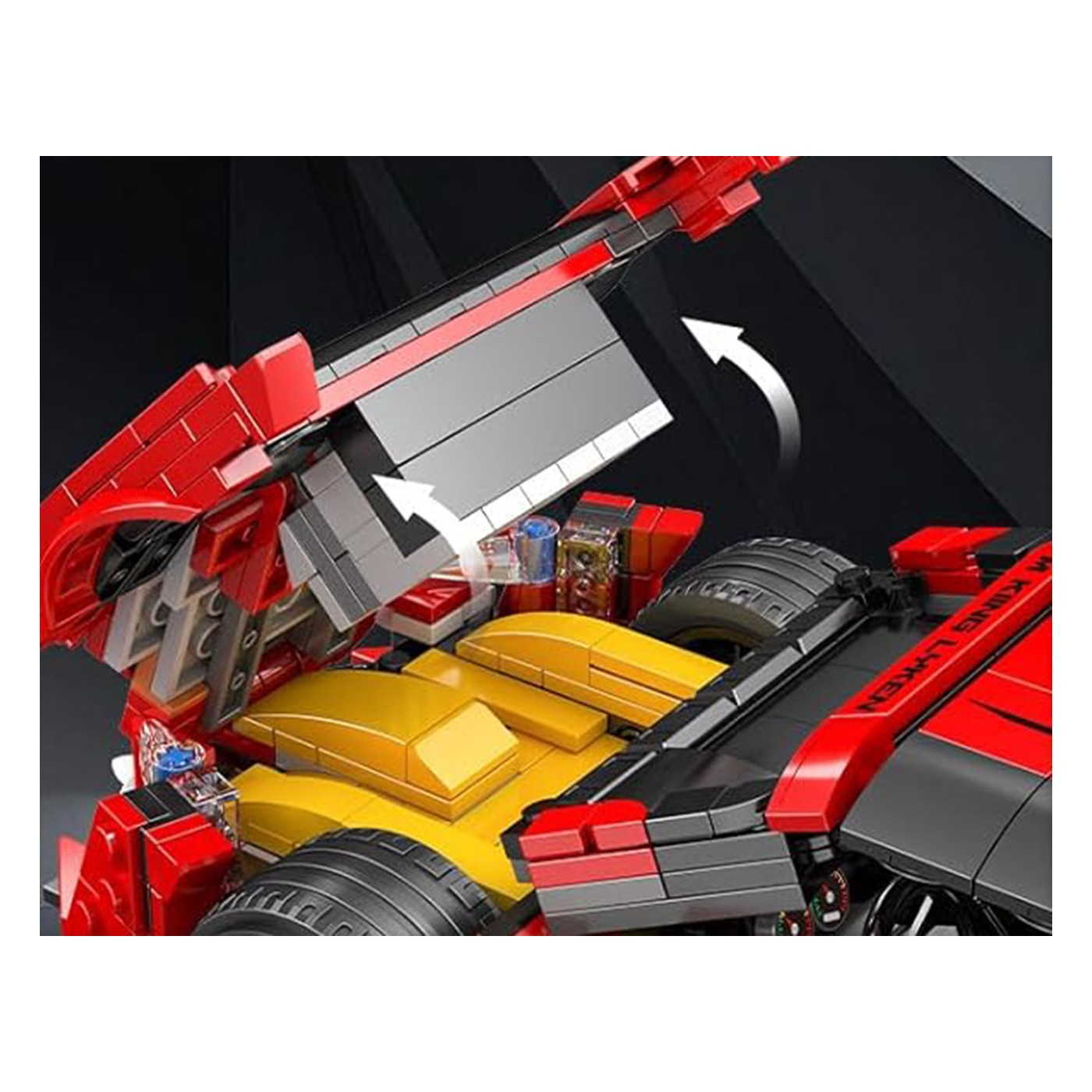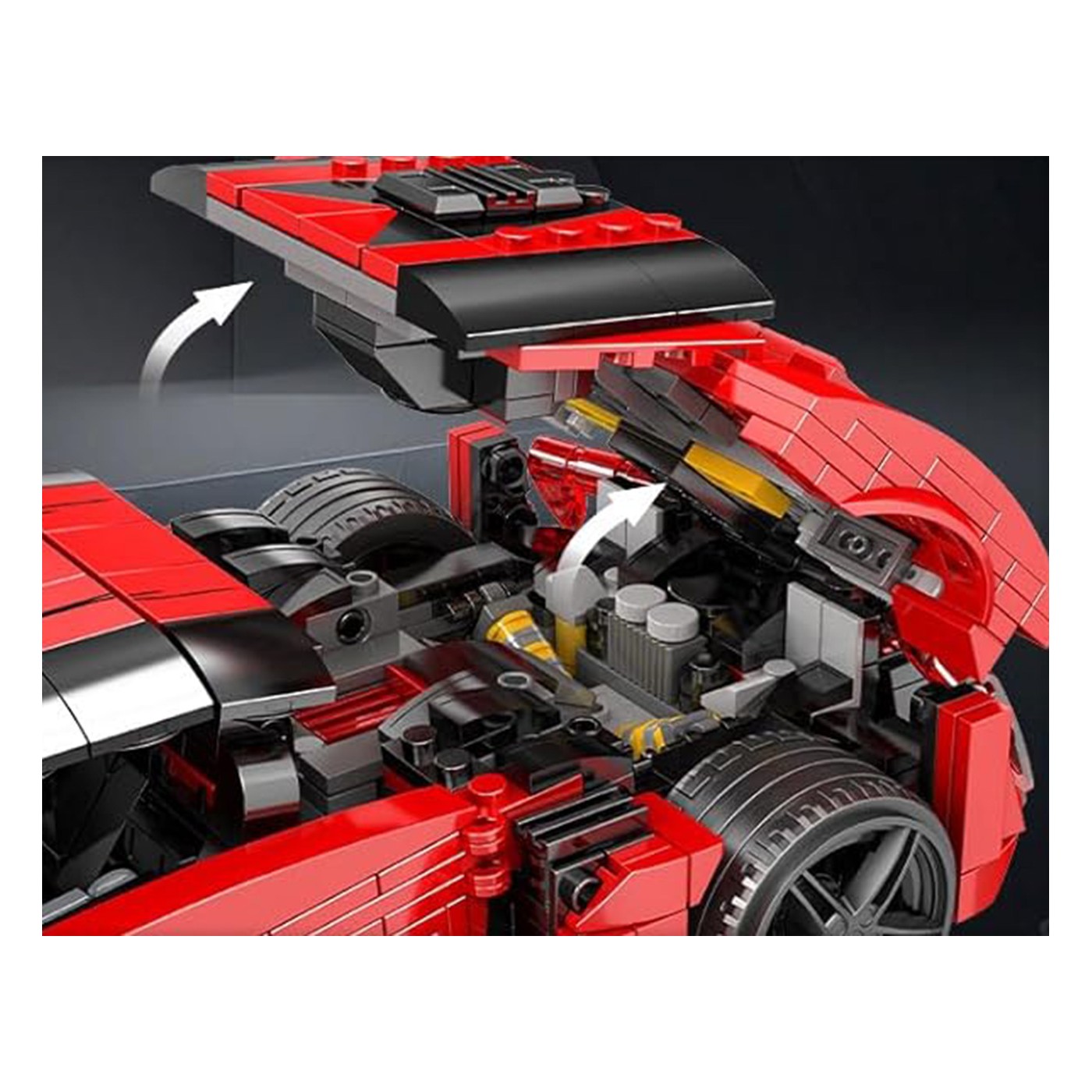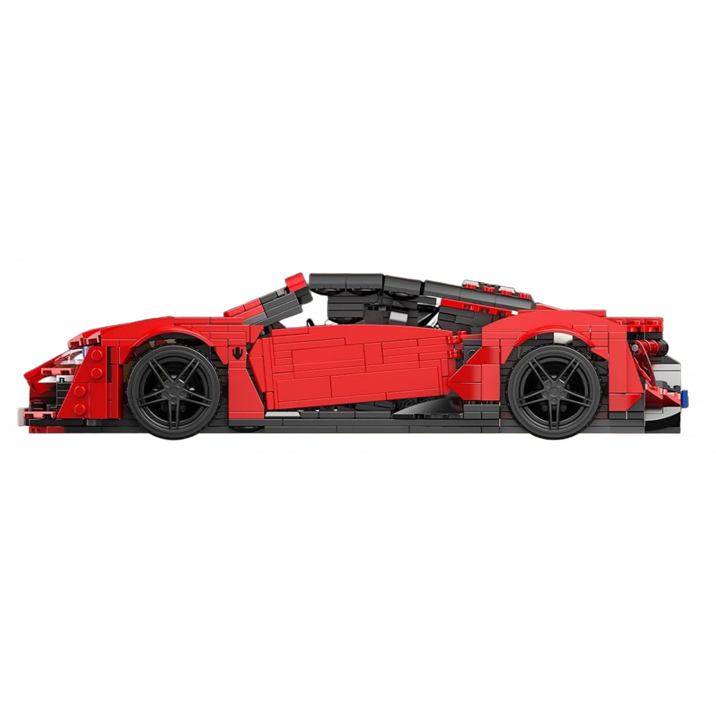 High-quality building blocks for children aged fourteen and up. The set consists of 1,311 pieces, from which you can build a red sports car. This stunning model car is sure to attract attention with its detail. The vehicle's interior is meticulously detailed, and the side doors and hood open.
