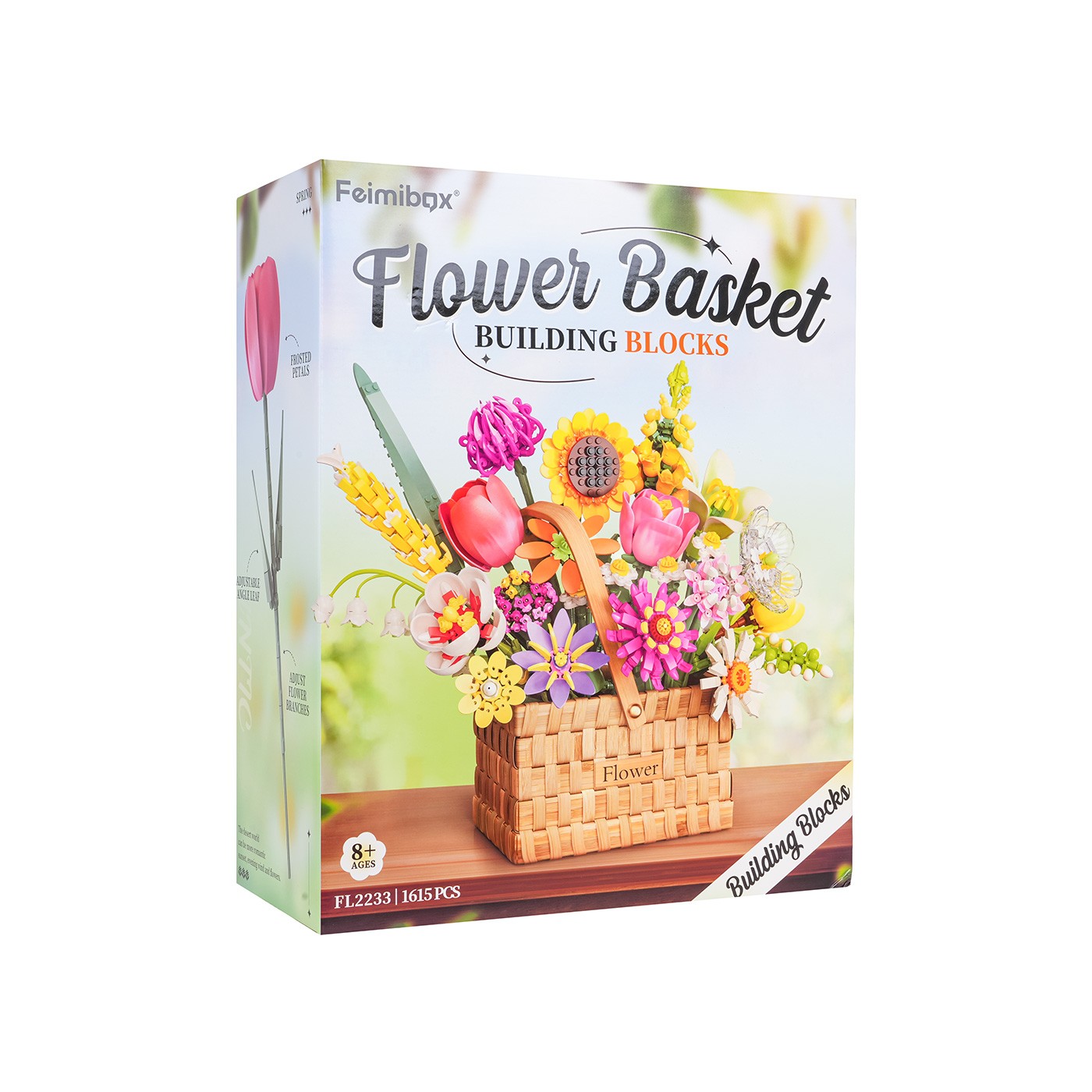High-quality building blocks for children aged eight and up. This set consists of 1,615 pieces, from which you can build a spring bouquet of flowers in a basket. This magnificent floral arrangement is sure to attract attention with its detailed design. It makes an ideal gift set for various occasions.