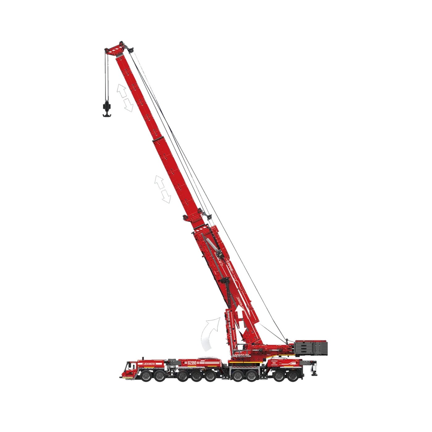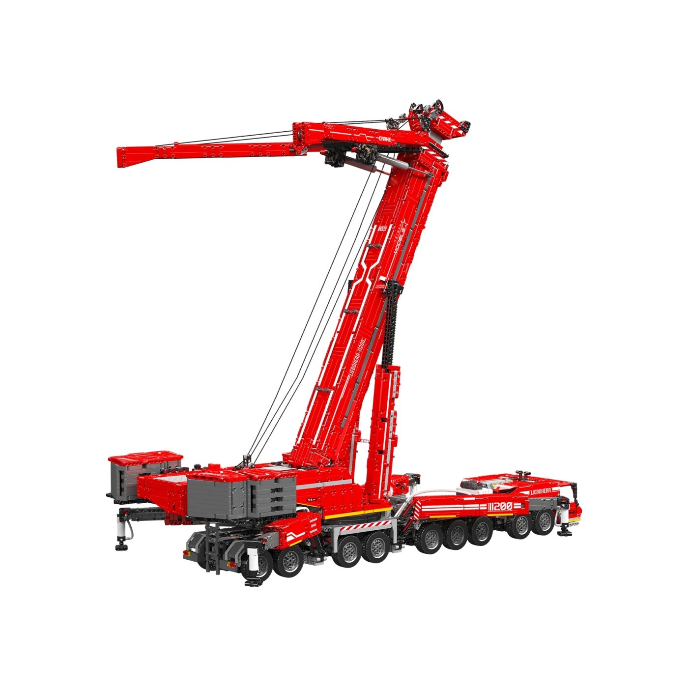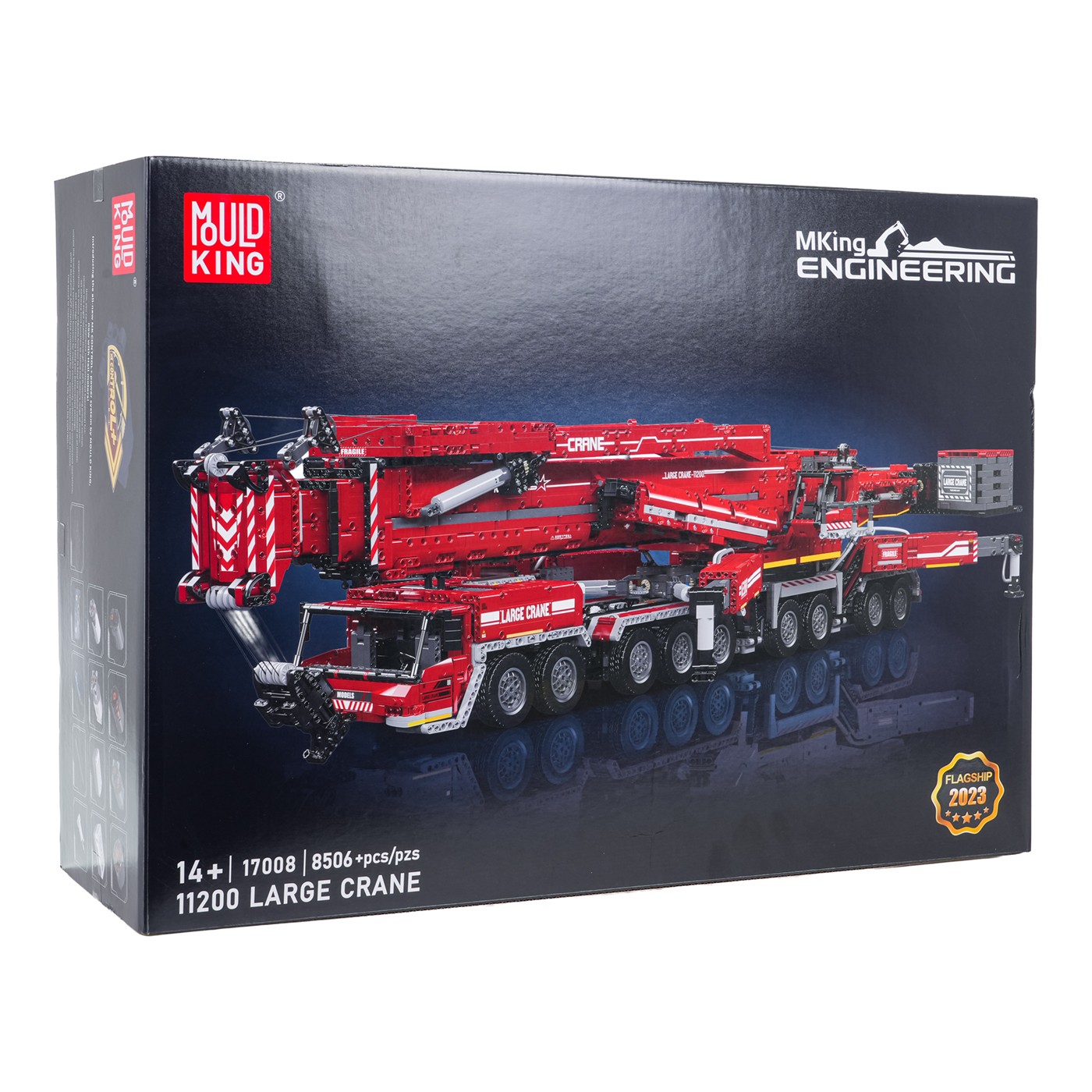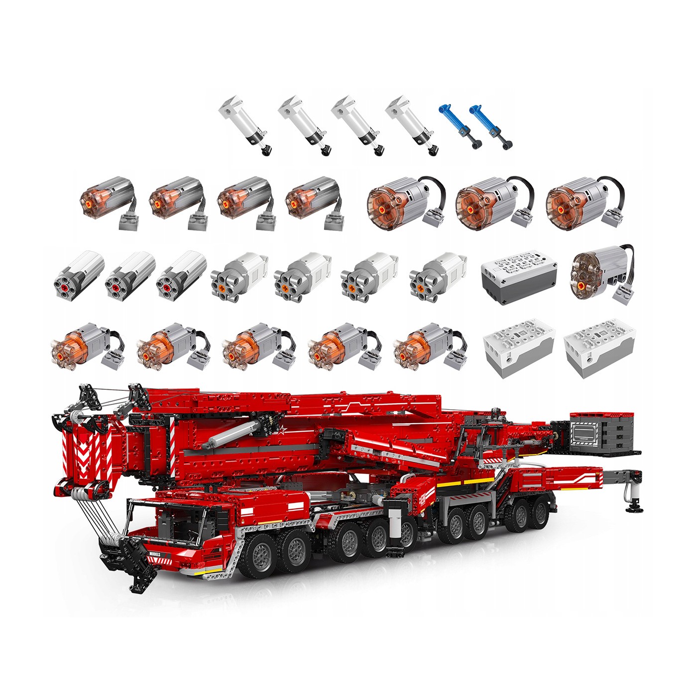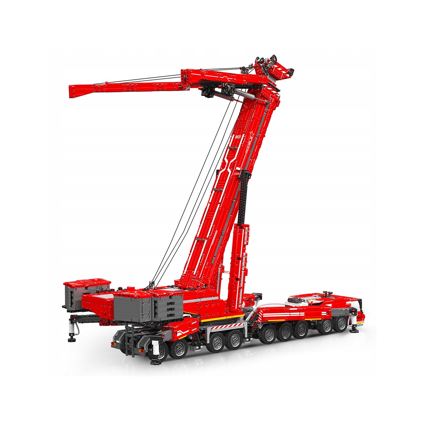 High-quality Mold King building blocks for children aged fourteen and up. The set consists of 8,506 pieces, from which you can build a red crane. It can be controlled using the included remote control or via a smartphone app. The app can be downloaded by scanning the QR code on the packaging. With the app, you can not only move the vehicle but also design its movements. The set is equipped with all the necessary motors and battery-powered boxes.