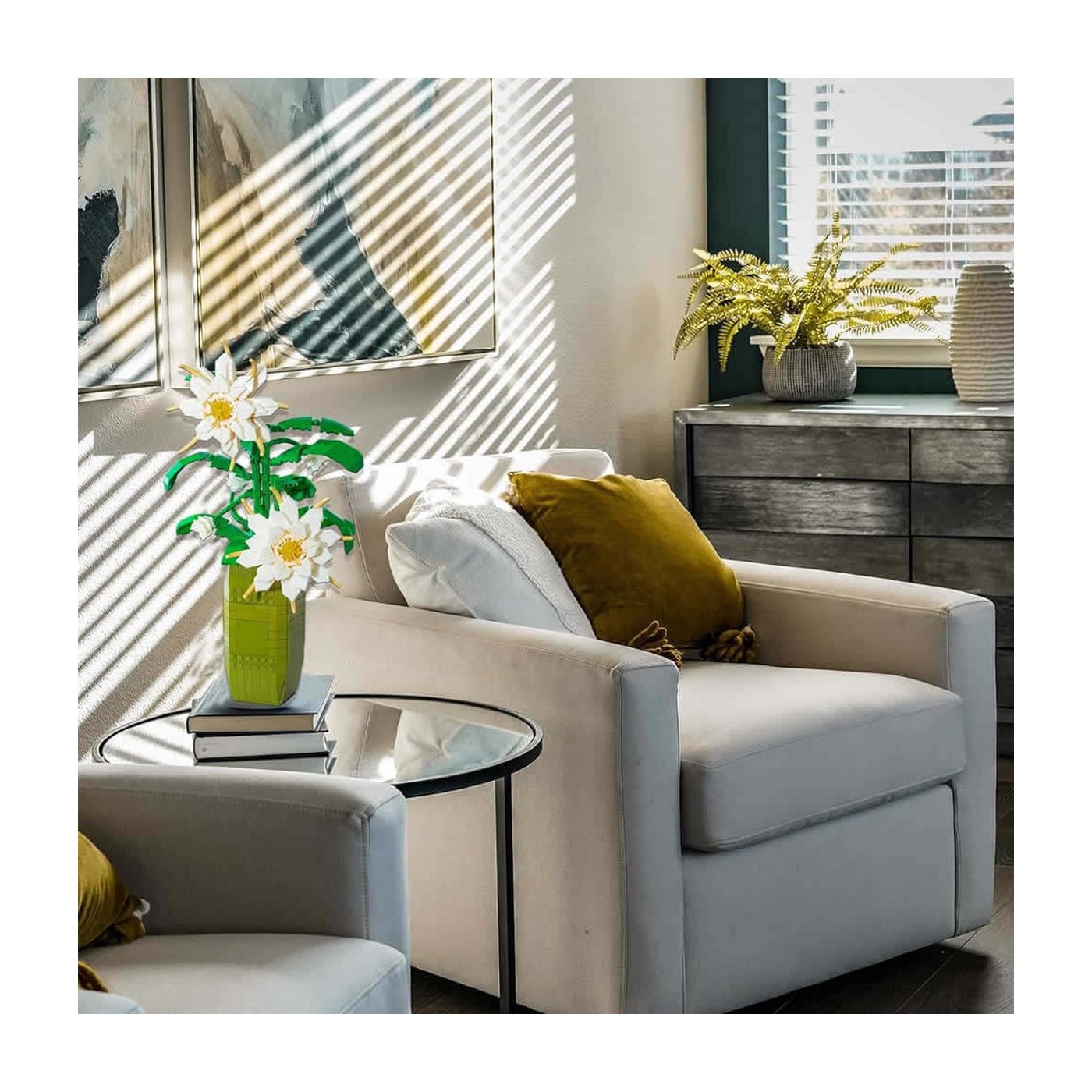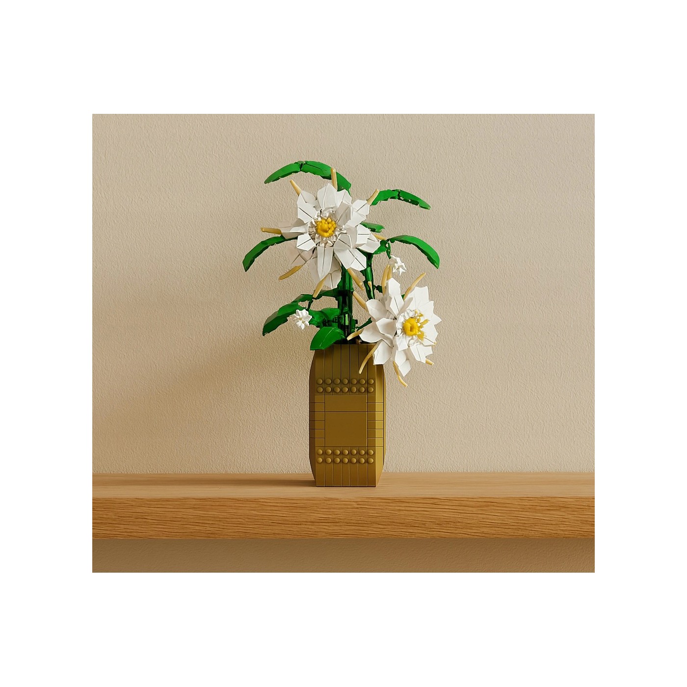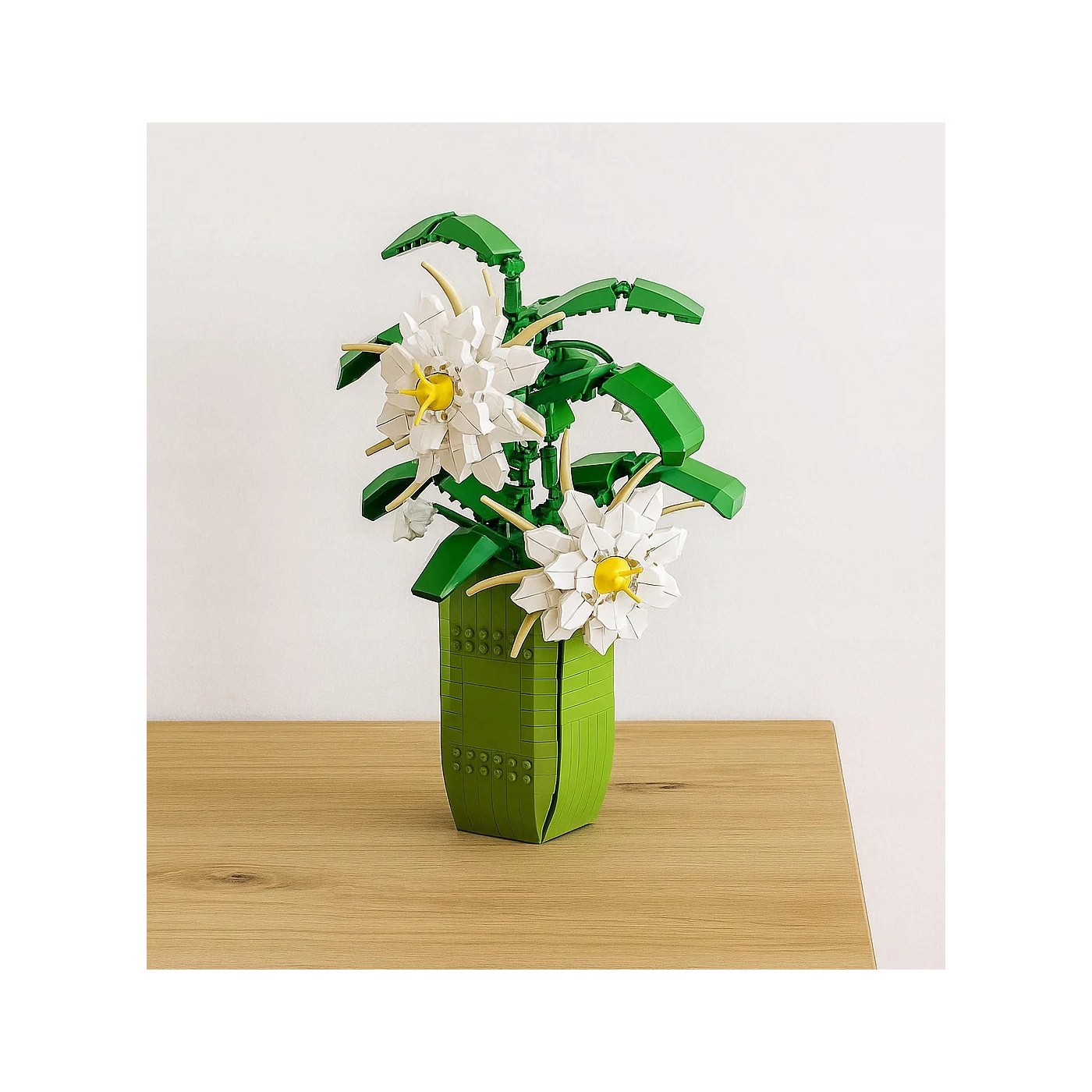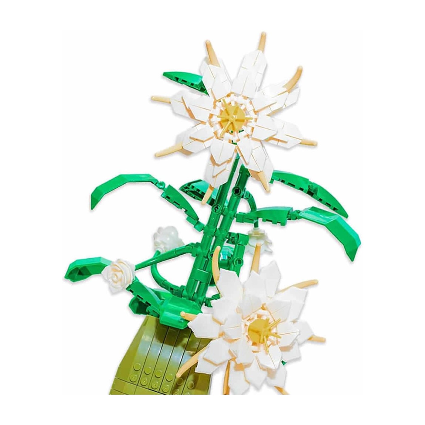 High-quality building blocks for children aged six and up. This set from the Flower series consists of 571 pieces, from which you can build white flowers in a pot. This stunning model is sure to attract attention with its detailed design.